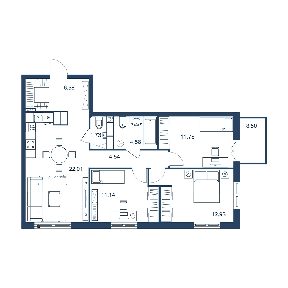 Квартира с тремя спальнями