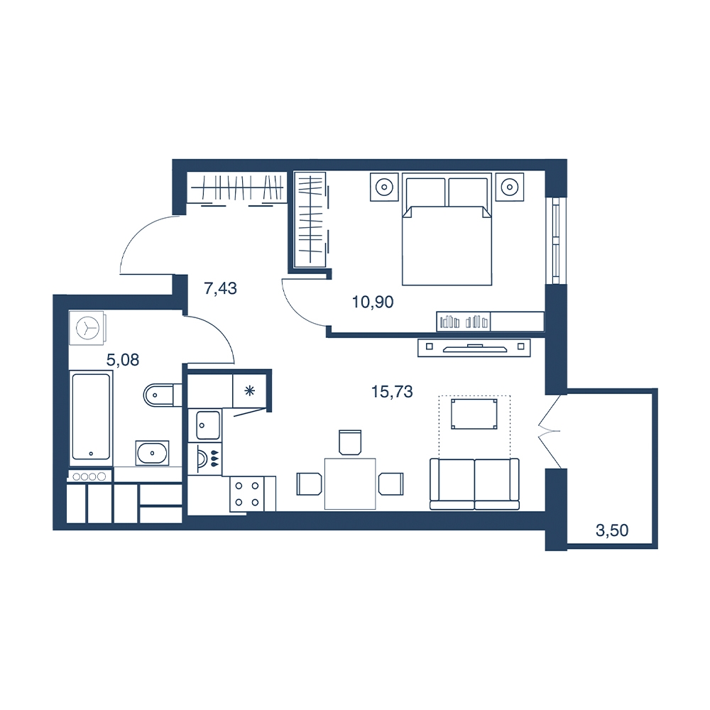 1-комнатная 42.64 м²