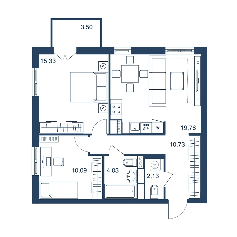 1-комнатная 45.93 м²